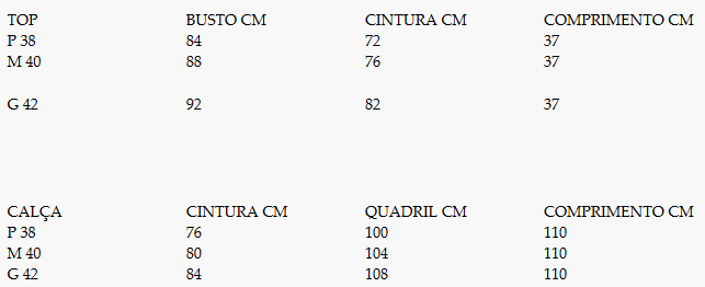Tamanhos P - 38 M-40 G-42