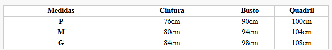 P veste 38, M veste 40 e G veste 42.